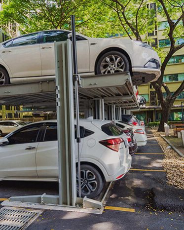 El duplicador de parqueo o duplicador de estacionamiento, es un sistema optimizador de espacio que permite acomodar un vehículo sobre otro, utilizando una rampa elevadora que se mueve verticalmente apoyada en 2 columnas. Los duplicadores de parqueo tienen una capacidad de carga entre 2300 Kg a 3600 Kg, son aptas para elevar automóviles, camionetas tipo: SUV o pick up y camperos.